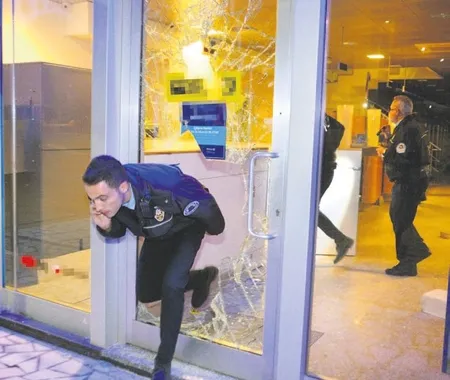 Polis ekipleri bankanın kırık camından içeri girerek zanlıyı yakaladı.