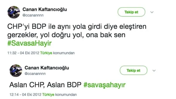 Cemal Canpolat, "CHP'yi BDP ile aynı yola girdi diye eleştiren gerzekler, yol doğru yol, ona bak sen" diyen, eleştiri getiren bir kitleyi "gerzeklikle" itham eden Canan Kaftancıoğlu böylece CHP'nin il başkanı oldu.