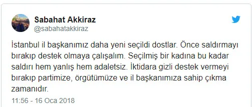 Eski CHP'li Sabahat Akkiraz konu hakkında dikkat çeken bir paylaşımda bulundu. Partililere seslenen Akkiraz, Canan Kaftancıoğlu'na saldırmayı bırakalım çağrısında bulundu.