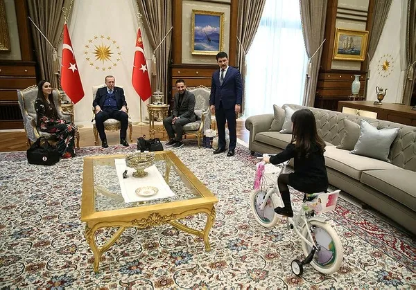 Cumhurbaşkanı Erdoğan, Yozgat'ta katıldığı AK Parti İl Kongresi'nde kendisiyle görüşemediği için gözyaşı döken küçük kızı Cumhurbaşkanlığı Külliyesi'nde kabul ederek kendisine bisiklet armağan etti.