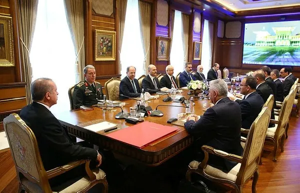 Erdoğan başkanlığındaki toplantıya Başbakan Binali Yıldırım, Başbakan yardımcıları Bekir Bozdağ ile Recep Akdağ, İçişleri Bakanı Süleyman Soylu, Dışişleri Bakanı Mevlüt Çavuşoğlu, Milli Savunma Bakanı Nurettin Canikli, Genelkurmay Başkanı Orgeneral Hulusi Akar, MİT Müsteşarı Hakan Fidan, Cumhurbaşkanlığı Genel Sekreteri Fahri Kasırga, Cumhurbaşkanlığı Sözcüsü İbrahim Kalın ile Başbakanlık Müsteşarı Fuat Oktay da katıldı.