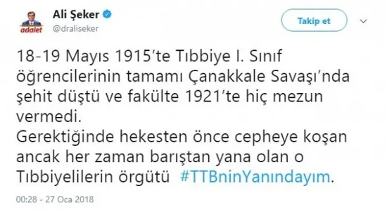 Başarılı geçen operasyonda 380'den fazla terörist öldürüldü. Tabii bu durum terör sevicileri harekete geçirdi. Operasyonla ilgili sessizliği bozan Türk Tabipler Birliği "Savaş bir halk sağlığı sorunudur" başlığıyla yayınladığı bildiride Zeytin Dalı Harekatı'nı eleştirdi.