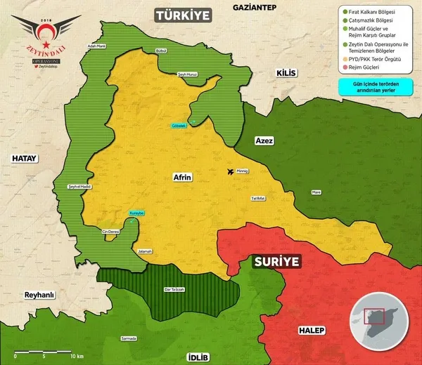 Zeytin Dalı Harekâtı 46. gününde başarı ile devam ediyor. Harekatın başından beri 2872 terörist öldürüldü, 114'ü köy, 30'u kritik nokta olmak üzere toplam 144 bölgeyi kontrol altına aldı. Cinderes’teki terörist hedefleri hava operasyonlarıyla vuruldu.