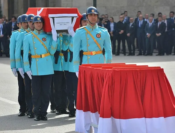 Törende, Güzel için saygı duruşunda bulunuldu ve dua edildi. Torunları, Hasan Celal Güzel'in fotoğrafını taşıdı.