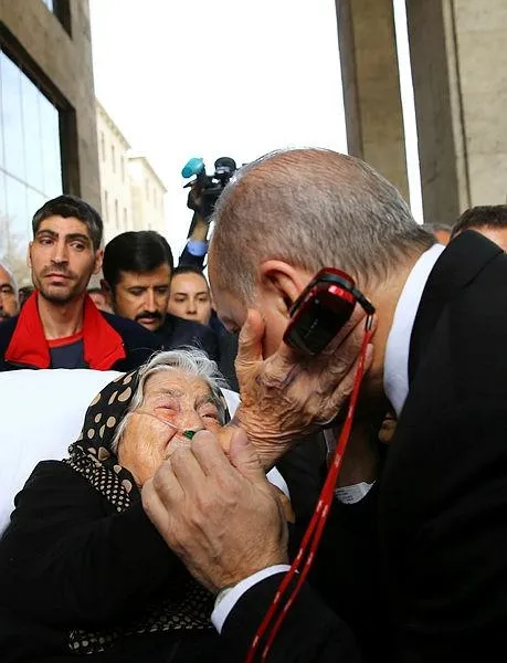 Güzel'in annesi de sedyeyle cenaze törenine katıldı. Cumhurbaşkanı Erdoğan ve törene katılanlar, aileye başsağlığı diledi.