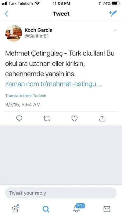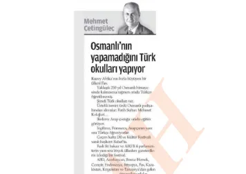 Mehmet Çetingüleç, FETÖ'nün yayın organı Zaman gazetesindeki köşesinde örgütün karanlık amaçları için kullandığı diğer ülkelerdeki okulları öven yazılar yazıyordu.
