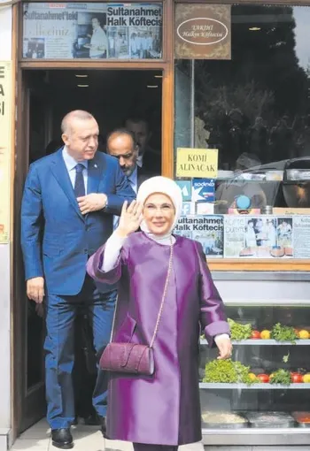 Cumhurbaşkanı Erdoğan ve eşi Emine Erdoğan Sultanahmet'te bir köfteciye girerek esnaf ziyareti yaptı.