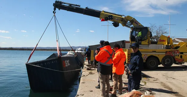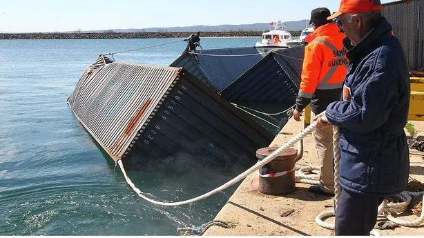 TCSG Güven korveti tarafından halatlarla çekilerek İğneada limanı yakınına getirilen konteynerler, balıkçı tekneleri yardımıyla limana yaklaştırıldı.