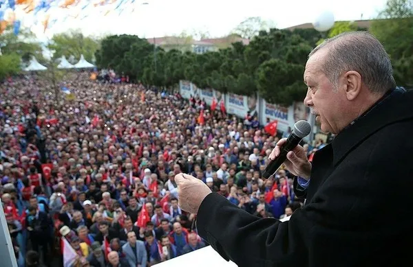 Ana kademe, kadın ve gençlik kollarından seçimler için çalışmalarını isteyen Erdoğan, "Çünkü bu seçimde ne var? Cumhurbaşkanlığı hükümet sistemi var. Türkiye dönem değiştiriyor. İnşallah hayırlısıyla bu seçimle farklı bir döneme giriyoruz. Türkiye artık bir zihniyet değişimini yaşıyor. Bu zihniyet değişiminde kararı siz vereceksiniz. Bay Kemal CHP'si onlar zihniyet değişiminden yana değil, hiçbir zaman olmadılar ki yine olmayacaktır. Ama biz artık bu makus talihi değiştireceğiz. İnşallah Türkiye'yi muasır medeniyetler seviyesinin üzerine çıkaracağız." değerlendirmesinde bulundu.