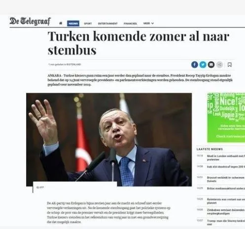 Hollanda merkezli gazete De Telegraaf, 'Türkler önümüzdeki yaz sandık başına gidiyor' başlığını attı.