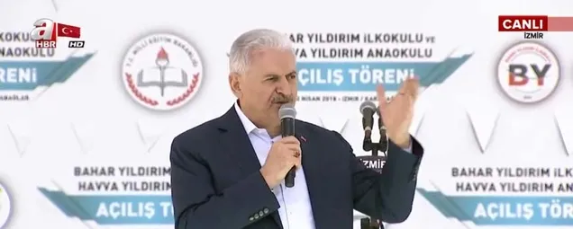 Yıldırım, törende yaptığı konuşmasına, "Bugün benim için, ailem için çok anlamlı, gurur verici bir gün. 23 Nisan Ulusal Egemenlik ve Çocuk Bayramı'nın hemen arifesinde Türkiye Cumhuriyeti'nin İzmir'den çıkan bir milletvekili, son Başbakanı olarak sizlere hitap ederken, pek çok heyecanı da birlikte yaşıyorum. Bu anlamlı günde rahmetli anamın ve Allah uzun ömürler versin sevgili kayınvalidemin adlarını taşıyan okullarımızı güzel ilçemiz İzmir'in en büyük ilçesi, en vefakar ilçelerinden biri Karabağlar'da okuyan yavrularımıza armağan ediyoruz, hayırlı uğurlu olsun." sözleriyle başladı.