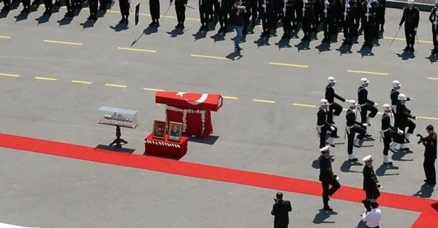 Özden Örnek’in Türk Bayrağı’yla kaplanan tabutunun başına, hayata geçirilmesinde büyük emekleri geçtiği ilk MİLGEM (Milli Gemi) Heybeliada Korveti’nin maketi konuldu.