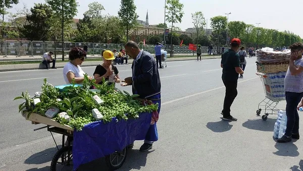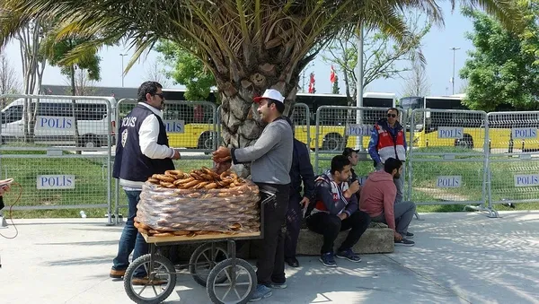 DİSK, KESK, Türk Tabipleri Birliği (TBB), Türk Mühendis ve Mimar Odaları Birliği (TMMOB) öncülüğünde 1 Mayıs Emek ve Dayanışma Günü kutlamasının yapılacağı Maltepe'deki miting alanında güneşli havanın tadını çıkaran vatandaşlar sayesinde seyyar satıcıların da yüzü güldü.