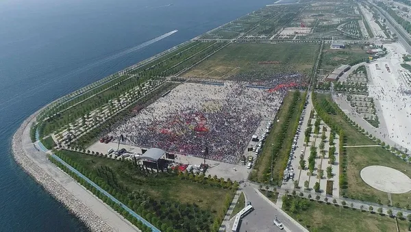 Miting alanına ulaşmak için toplanma alanlarına gelen vatandaşlar, polis tarafından oluşturulan kontrol noktalarından geçirilerek içeri alındı.