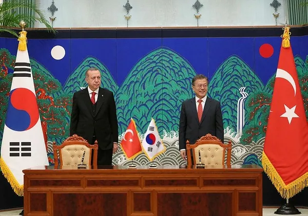 Güney Kore ve Türkiye ilişkilerinin özellikle son dönemde çok iyi bir noktada olduğunu belirten Erdoğan, yaklaşık 7,5 milyar dolarlık bir ticaret hacmine sahip olunduğunu söyledi.