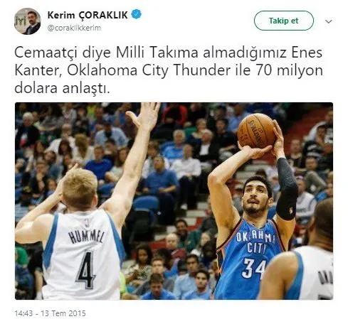 FETÖ'CÜ KANTER'İ SAVUNMUŞ