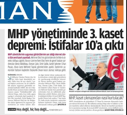 29 Nisan 2011: Zaman gazetesi yazarı Bülent Korucu ise; "MHP'de istifa depremi" başlıklı köşe yazısında; "Skandalı ortaya çıkaran ve ülkücü olduğunu savunan site, kendileri istifa etmezse aynı çizgideki yöneticileri deşifre tehdidinde bulunuyor. Doğruysa, yeni kasetler Devlet Bahçeli'ye baş etmekte zorlanacağı gaileler açabilir" ifadelerini kullandı ve Devlet Bahçeli'yi tehdit etti.