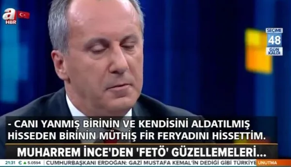 FETÖ elebaşının bedduasına da ilişkin "Ne hissettiniz?" sorusuna da skandal sözlerle yanıt veren İnce "Canı yanmış birinin ve kendisini aldatılmış hisseden birinin müthiş bir feryadını hissettim" demişti.