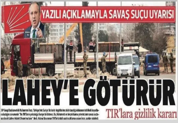 MİT TIR'larının durdurulması konusunda da FETÖ'nün tarafında yer alan Muharrem İnce o dönem sık sık Lahey tehdidinde bulunan FETÖ'cülerle aynı safta yer alarak IŞİD'e silah yardımı yapıldığı iftirasını dillendirmişti.