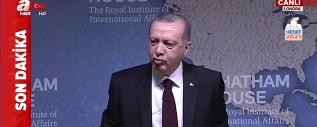Cumhurbaşkanı Recep Tayyip Erdoğan, düşünce kuruluşu Chatham House’da katılımcılara hitap etti. Erdoğan, "3 semavi dinin kutsalı olan Kudüs'ün statüsünü değiştirmeye yönelik adımlar uluslararası toplumun itirazlarına rağmen bugün hayata geçiriliyor. İnsan insanın kurdudur sözünü haklı çıkartmaya çalışan bir tabloyla karşı karşıyayız." dedi.