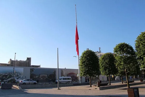 Ulusal yas ilanından sonra Taksim Meydanı'nda bulunan bayraklar yarıya indirildi.