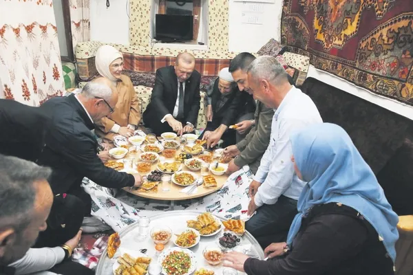 Cumhurbaşkanı Erdoğan ve eşi Emine Erdoğan, Ankara'da dün akşam Hüseyin Cahit Sargın adlı vatandaşın evine konuk oldu, yer sofrasında oruç açtı. Objektiflere ise sıcak görüntüler yansıdı. Erdoğan, Twitter hesabından yaptığı paylaşımda ise, "Bugün iftarda Hüseyin Cahit Sargın amcamızın ve ailesinin evine misafir olduk. Alicenap milletimizin sofralarından Ramazan bereketi hiç eksik olmasın" ifadelerini kullandı.