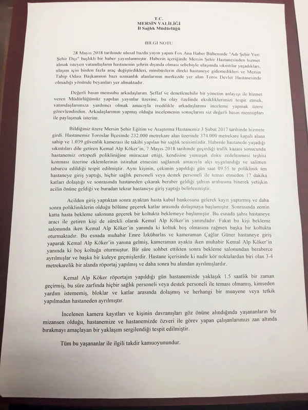 Amerikan sermayesi ile kurulan ve Türkiye'nin milli çıkarlarına muhalif skandal yayınlarıyla bilinen FOX TV, kritik öneme sahip 24 Haziran seçimleri öncesinde şehir hastaneleri üzerinden kara propagandaya girişti. Düzmece görüntülerle sırf hükümeti karalamak adına mizansen bir haberle algı operasyonuna girişti. FOX'un kumpas için sahnelediği büyük yalanı güvenlik kamerası görüntüleriyle ortaya çıktı.