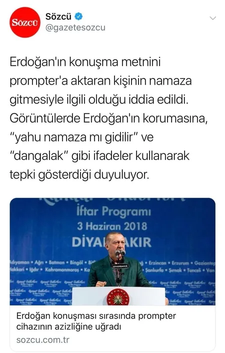 Ana muhalefet partisi CHP, İYİ Parti ve Saadet Partisi temsilcileri; Cumhurbaşkanı Recep Tayyip Erdoğan'ın Diyarbakır'da katıldığı 'Kanaat Önderleri İftar Programı'nda konuşma yaparken kısa süre sessiz kalmasını, "Prompter bozuldu, Erdoğan konuşamadı" şeklinde ifadelerle çarpıttı.