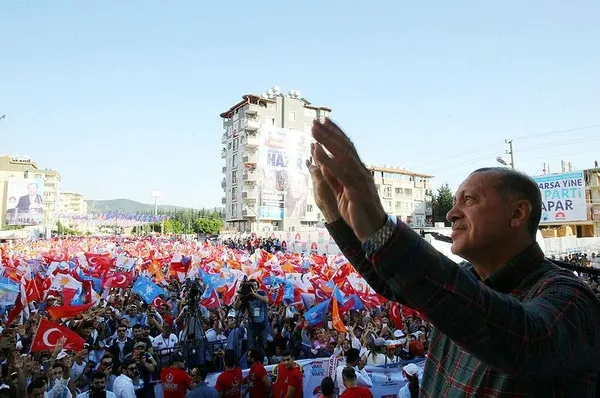 Hatay siz bugün bir başka güzelsiniz, şu muhteşem kalabalığa bak. Siz tabi göremiyorsunuz arkada neler var, bu ne coşku, bu ne heyecan. 24 Haziran inşallah yine böyle olacak. 24 Haziran'da birilerine o dersi vermeye hazır mıyız? Buradan sizlerin aracılığıyla Hatay'ın ilçelerindeki tüm kardeşlerime en kalbi selamlarımı gönderiyorum.