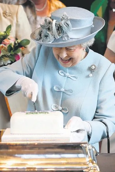 Kraliçe Elizabeth 92. pastasını keserken çok mutlu görünüyordu.