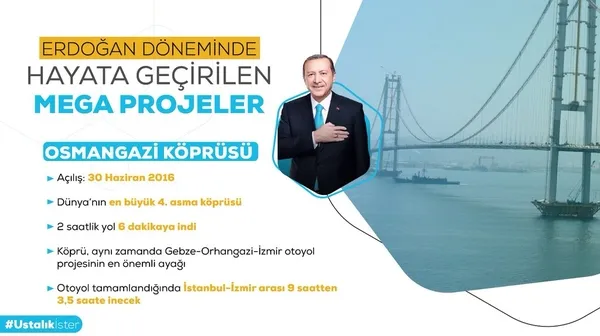 Türkiye muasır medeniyetler seviyesinin üzerine çıkmak üzere yapılan mega projelerini bir bir hayata geçiriyor. Yıkmayı, satmayı, yakmayı vadedenlere karşı dünya çapındaki projelere atılan imzalar, Türkiye'yi aydınlık geleceklere taşıyor!