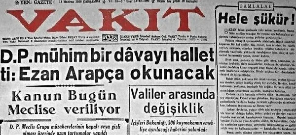 CHP'nin tek parti döneminde uygulamaya soktuğu Arapça ezan okuma yasağı Adnan Menderes hükümeti tarafından 16 Haziran 1950'de kaldırıldı. CHP'nin yasakçı zihniyetine vurulan ilk tokat olan bu yasağın kaldırılması bugün 68. yıldönümüne girdi.