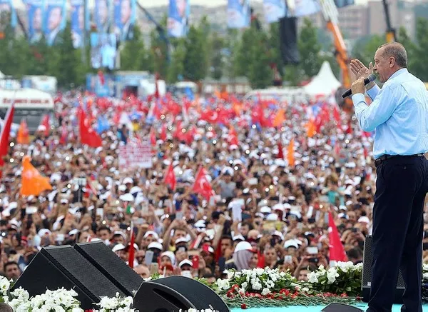 Yenikapı tarihi mitinglerinden birini daha yaşadığı. Milyonlarca İstanbullu bayram tatili demeden yağmur demeden AK Parti'nin Büyük İstanbul Mitingi için Yenikapı'ya akın etti. Yenikapı'da milyonlarca İstanbullu'ya hitap eden Cumhurbaşkanı ve AK Parti Genel Başkanı Recep Tayyip Erdoğan, "En baba mitingimizi İstanbul'da yapıyoruz. 24 Haziran'da kükremeye var mısın İstanbul? 24 Haziran'da bir destan yazıyor muyuz? İstanbul, 24 Haziran'da vakit İstanbul vakti diyor muyuz? İrade erdem ve cesaretle Türkiye'yi şahlandırıyor muyuz? Maşallah ben inanıyorum, İstanbul kararını verdi. 24 Haziran Demokrasi bayramımız şimdiden hayırlı olsun" dedi. İşte Erdoğan'ın dev mitingde yaptığı o konuşma..