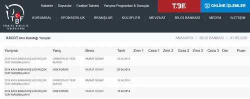 *Kayıtlar Türkiye Binicilik Federasyonu'nun internet sitesinden alınmıştır