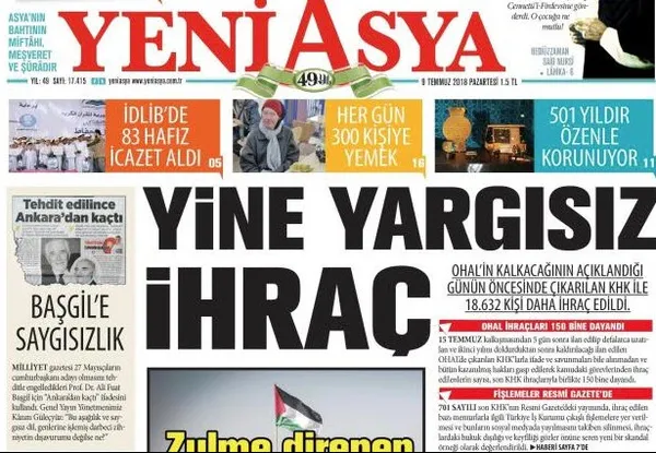 FETÖ ve diğer terör örgütlerine karşı daha hızlı ve kararlı bir şekilde mücadele için çıkarılan OHAL'i daha önce sürekli olarak hedef alan Yeni Asya, OHAL'in bir an önce kaldırılarak kripto durumda bulunan ve deşifre olmamış FETÖ'cülere alan açmaya çalışmıştı. Bu şekilde bulunan FETÖ'cülerin çalışmalarını yürütmesini kolaylaştırmayı amaçlayan sözde gazete, üst düzey FETÖ'cülerin de yurt dışına kaçmasına zemin hazırlamak istemişti.