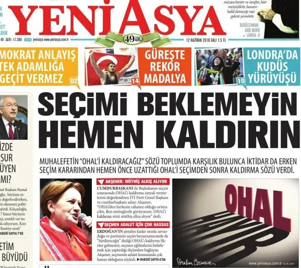 Zaman gazetesi geçmişte ne görev üstleniyorsa, Yeni Asya bugün aynı işlevi görüyor Yüce kitabımız Kuran'ın eğitimini, örgüt faaliyetlerinin propagandası için kullanıyorlar. İşte Yeni Asya'nın skandal manşetlerinden biri;
