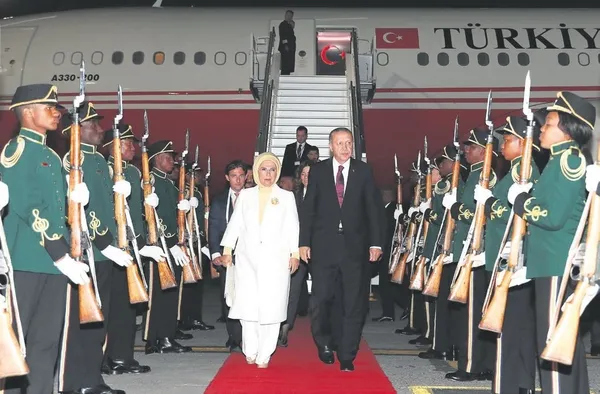 Erdoğan, BRICS Zirvesi'ne katılmak için gittiği Johannesburg'ta askeri tören ile karşılandı.