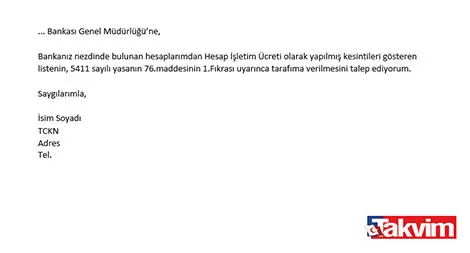 Hesap işletim ücreti nasıl geri alınacak? (Vatandaş parasını nasıl iade alıcak?) İşte dilekçe örneği...