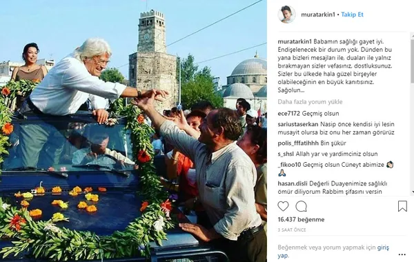 Cüneyt Arkın'ın sağlık durumunu oğlu hakkında Murat Arkın bilgi verdi. Arkın, Instagram hesabından şu notu paylaştı, Babamın sağlığı gayet iyi. Endişelenecek bir durum yok. Dünden bu yana bizleri mesajları ile, duaları ile yalnız bırakmayan sizler vefasınız, dostluksunuz. Sizler bu ülkede hala güzel bir şeyler olabileceğinin en büyük kanıtısınız. Sağ olun...
