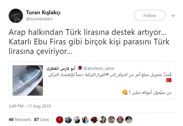 ABD tarafından Türkiye'ye başlatılan ekonomik 15 Temmuz saldırılarına bir karşı duruş da Avrupa'dan geldi. İsviçre'de yaşayan Suriyeli bir genç kız, Türkiye ekonomisine destek için, parasını Türk lirasına çevirdi