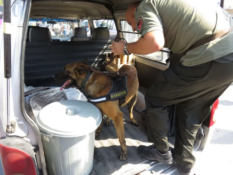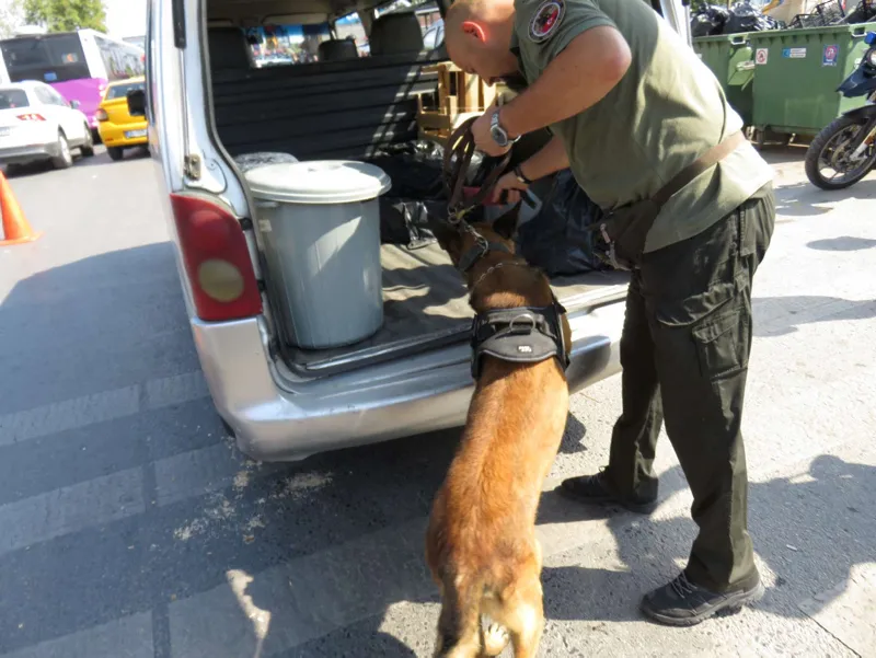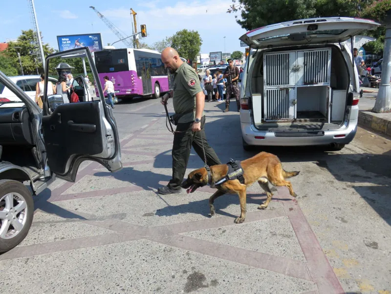 Şüpheli araçlar dedektör köpekleriyle arandı.