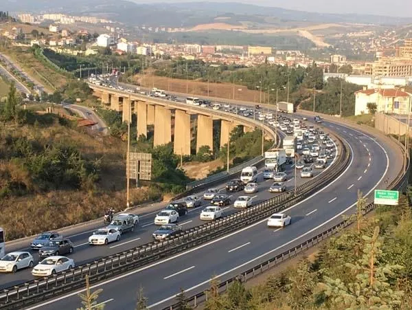 Tatilcilerin trafikteki yoğun hareketliliği sürüyor. TEM Otoyolu Kocaeli geçişi İstanbul istikametinde öğle saatlerinde başlayan yoğunluk artarak devam ediyor. Sakarya'nın Sapanca ilçesi Mahmudiye geçişinde başlayan trafik yoğunluğu Kocaeli'nin Derince ilçesine kadar sürüyor. Saat 19:00 itibariyle bu bölgeler arasında oluşan yaklaşık 40 kilometrelik araç kuyruğu İstanbul istikametine doğru adım adım ilerliyor. Derince ilçe geçişinde rahatlayan trafik akışı, Gebze Kirazpınar mevkiinde yeniden yoğunlaşıyor.