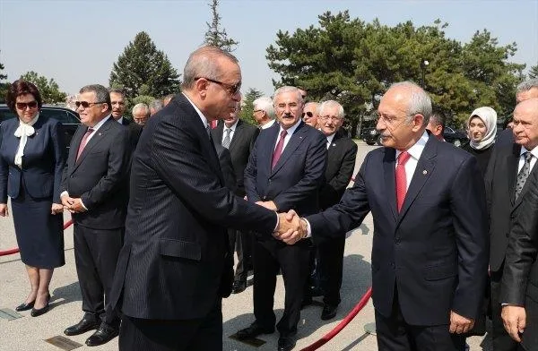 İki lider selamlaştıktan sonra Kılıçdaroğlu, Erdoğan'ın arkasından uzun uzun baktı. Bu sırada suratının şeklinin değiştiği görüldü.