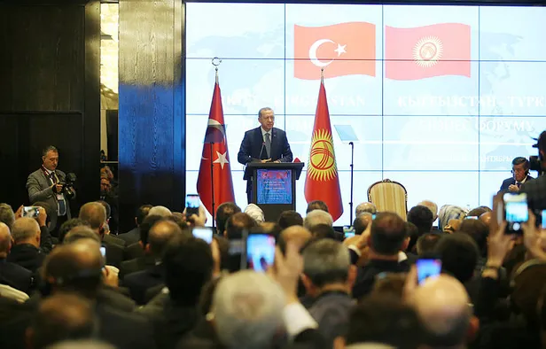 Türkiye Cumhurbaşkanı Recep Tayyip Erdoğan, "Türk iş adamlarına sesleniyorum, Kırgızistan dost ve kardeş bir ülkedir. Yatırımlarınızda gelin bu ülkeye öncelik verin." dedi.