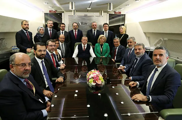 Cumhurbaşkanı Recep Tayyip Erdoğan, Kırgızistan'daki temaslarını tamamlayarak, özel uçak "TUR" ile Ankara'ya gelişinde uçakta gazetecilerle sohbet etti.