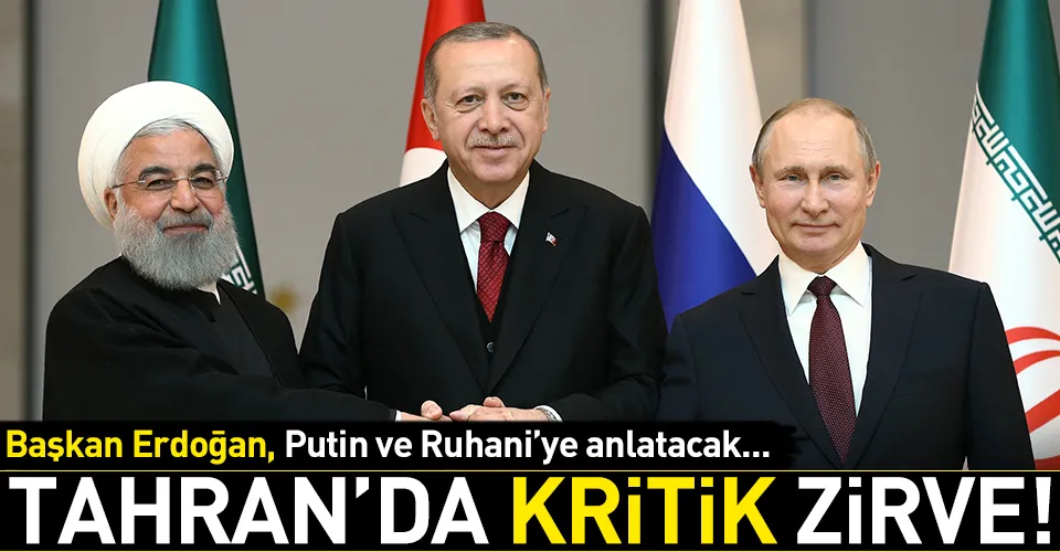 Cumhurbaşkanı Erdoğan, bugün saat 09.10'da özel uçak CAN ile Ankara Esenboğa Havalimanı'ndan hareket ettiği Tahran'a saat 11.30 sularında ulaştı. Erdoğan ilk olarak İran İslam Cumhuriyeti Cumhurbaşkanı Hasan Ruhani ile görüştü. Erdoğan-Ruhani görüşmesi yaklaşık yarım saat sürdü. Cumhurbaşkanı Erdoğan, Ruhani ile yaptığı görüşmenin ardından Rusya Devlet Başkanı Putin ile bir araya geldi. Öte yandan Erdoğan-Putin ikilisinin neşeli hali dikkat çekti. Görüşmede Erdoğan'a Dışişleri Bakanı Mevlüt Çavuşoğlu, Milli Savunma Bakanı Hulusi Akar, Hazine ve Maliye Bakanı Berat Albayrak, Cumhurbaşkanlığı Sözcüsü İbrahim Kalın ve Milli İstihbarat Teşkilatı Başkanı Hakan Fidan eşlik ediyor.