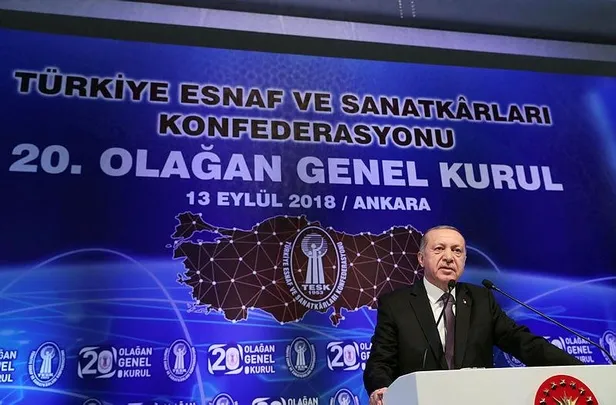 Cumhurbaşkanı Erdoğan TESK Genel Kurulu'nda açıklama yapıyor. Erdoğan'ın açıklamaları şöyle: