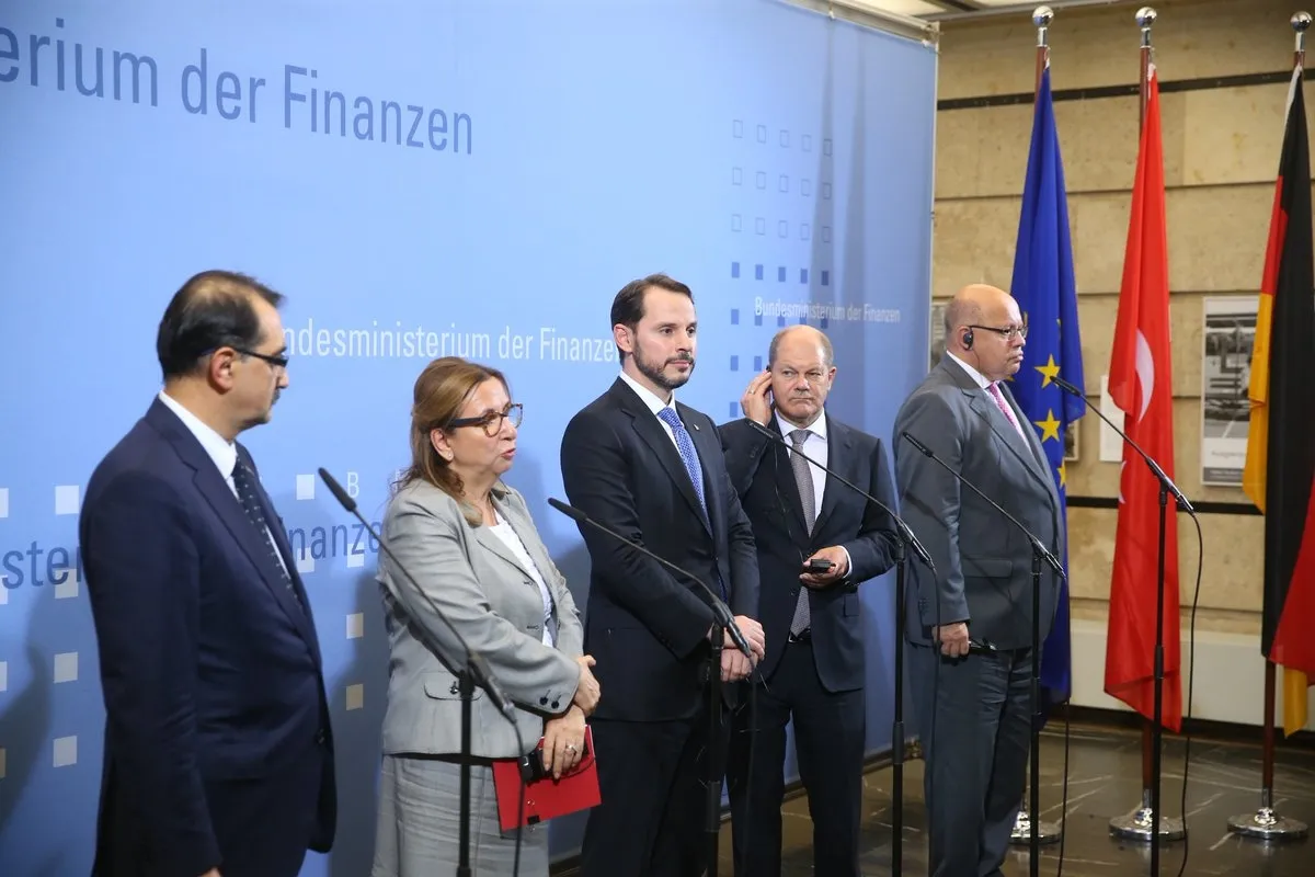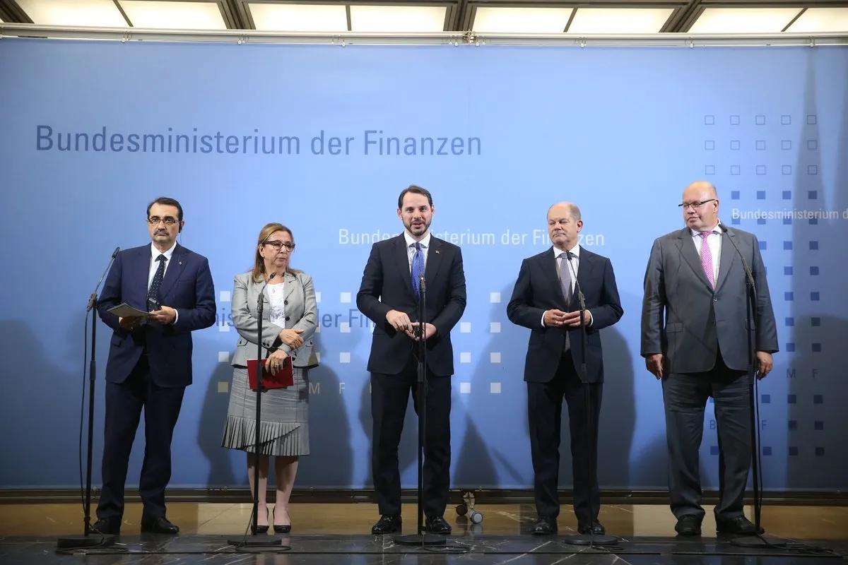 Almanya'ya resmi ziyaret düzenleyen Hazine ve Maliye Bakanı Berat Albayrak, Ticaret Bakanı Ruhsar Pekcan ve Enerji ve Tabii Kaynaklar Bakanı Fatih Dönmez Alman mevkidaşları ile birlikte başkent Berlin'de basın açıklaması yaptı.