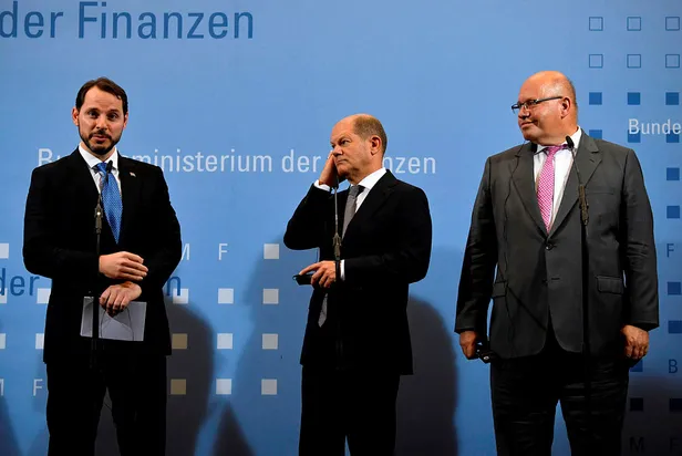 Almanya'ya resmi ziyaret düzenleyen Hazine ve Maliye Bakanı Berat Albayrak, Ticaret Bakanı Ruhsar Pekcan ve Enerji ve Tabii Kaynaklar Bakanı Fatih Dönmez Alman mevkidaşları ile birlikte başkent Berlin'de basın açıklaması yaptı. Hazine ve Maliye Bakanı Albayrak iki ülke arasındaki ilişkileri değerlendirerek, Cumhurbaşkanı Recep Tayyip Erdoğan'ın Almanya'ya düzenleyeceği resmi ziyaretin iki ülke arasındaki ilişkileri ve Avrupa Birliği ile Türkiye arasındaki ilişkilere katkı sağlayacağını söyledi.