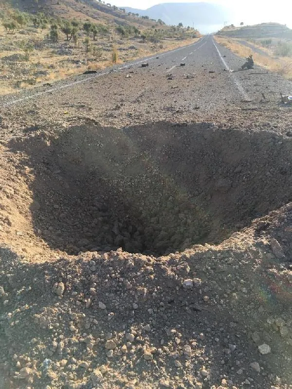 Patlamayla birlikte asfalt yolda 1,5 metre derinliğinde 4,5 metre çapında geniş çukur oluştu.
